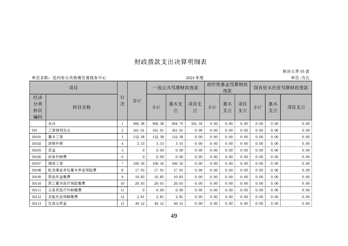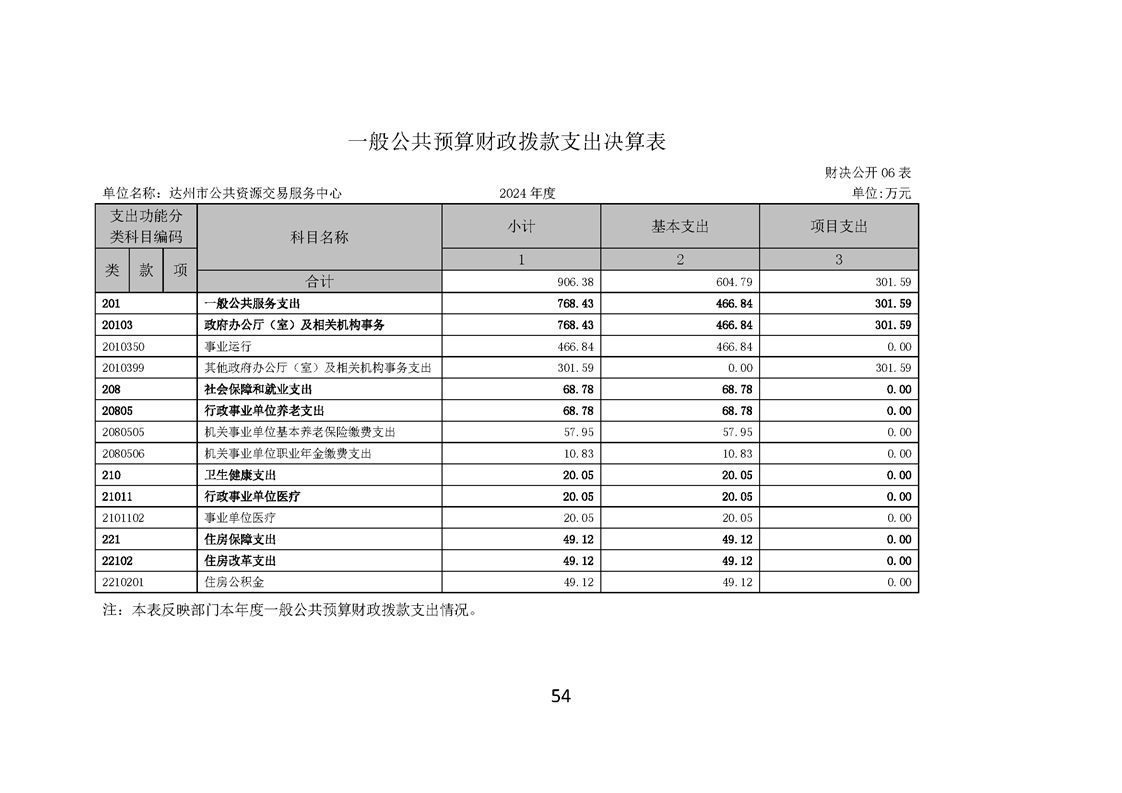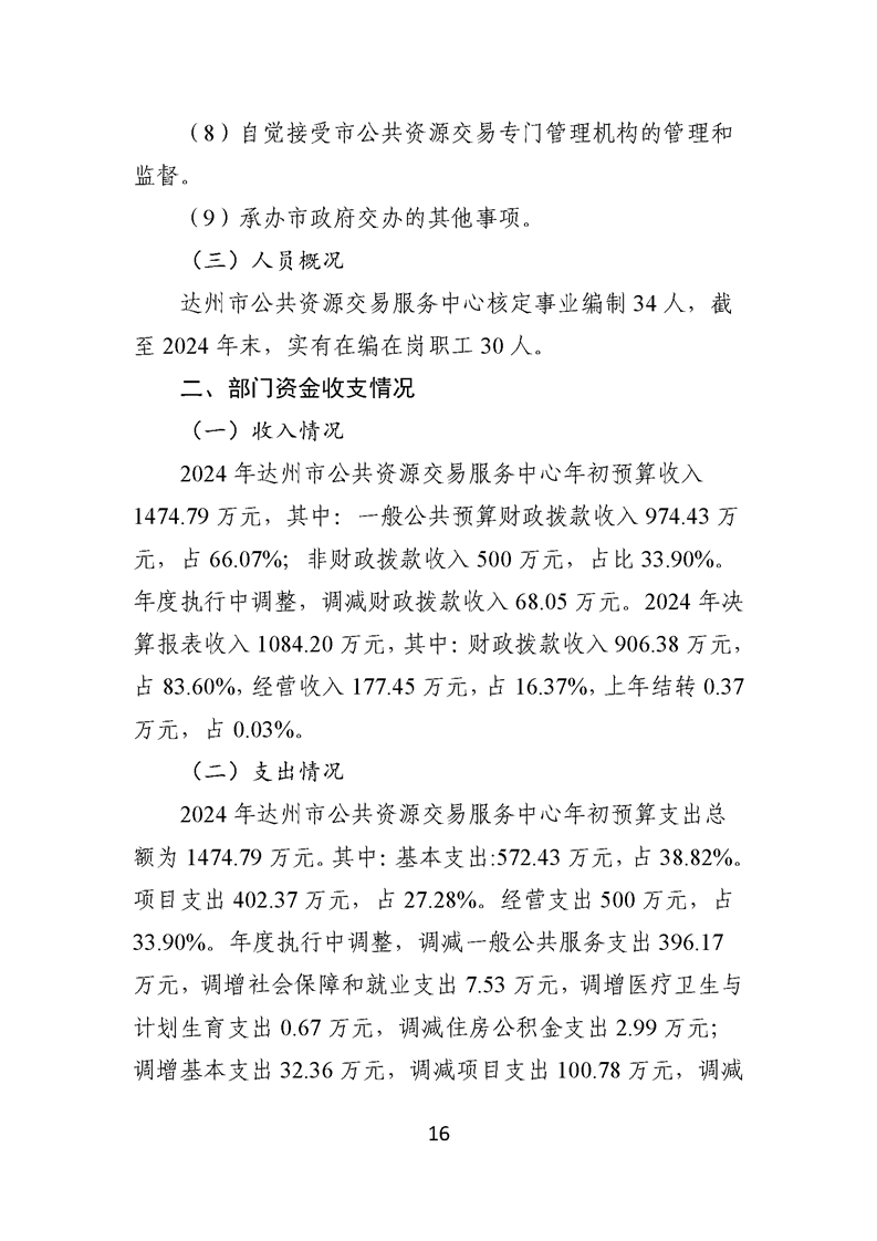 2024年达州市公共资源交易服务中心决算公开