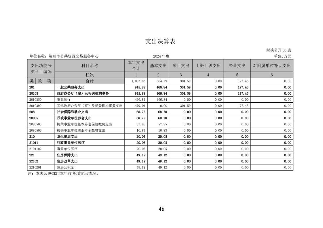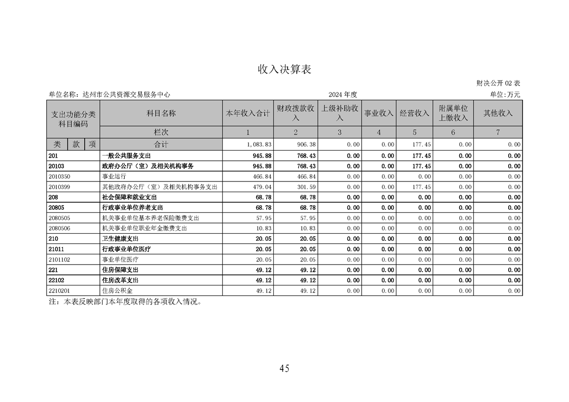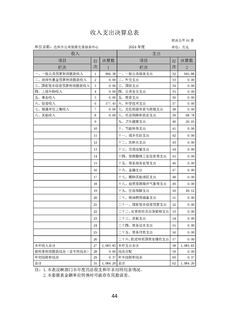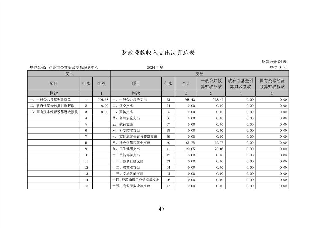 2024年达州市公共资源交易服务中心决算公开