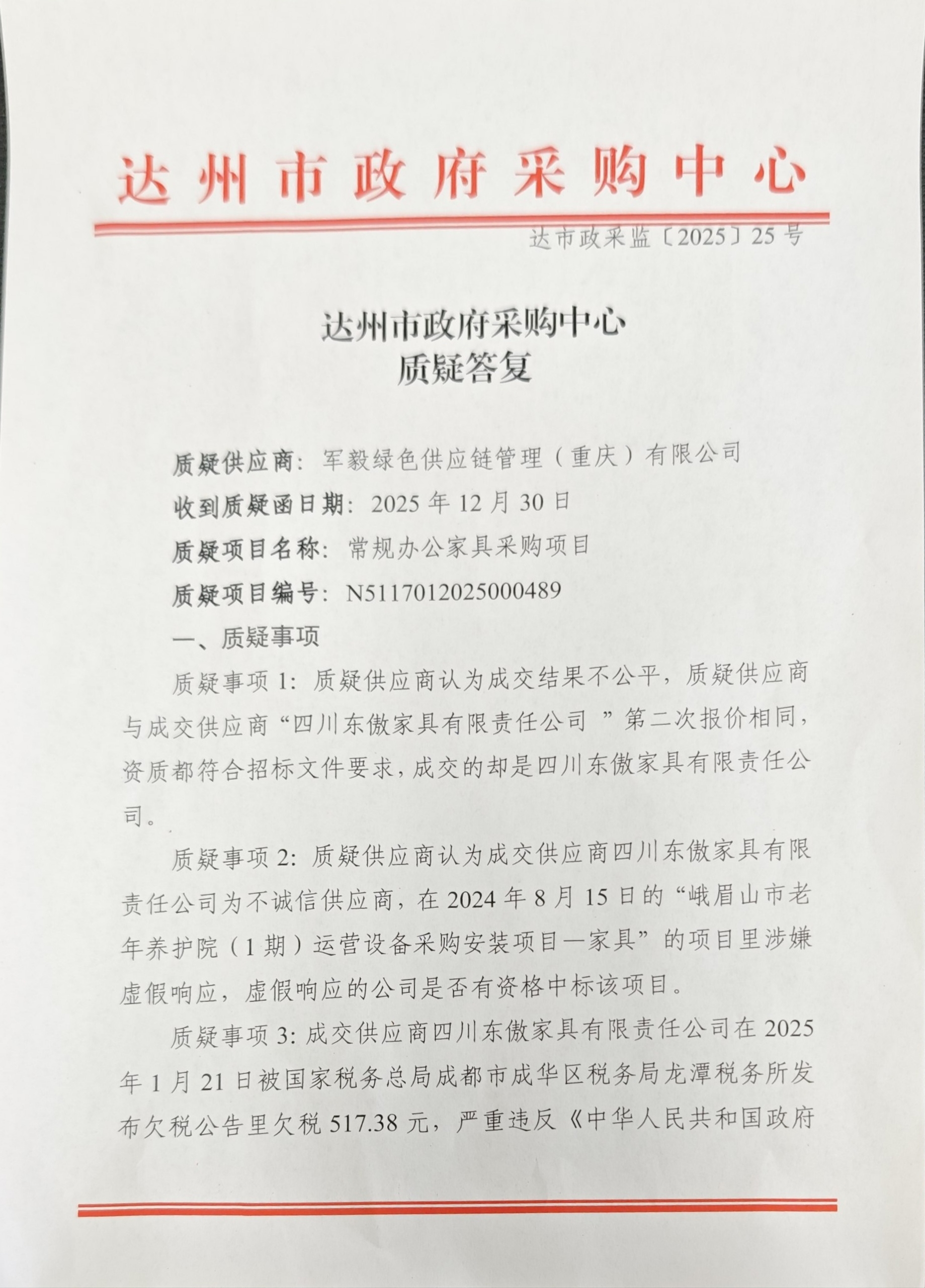 常规办公家具采购项目质疑答复.pdf