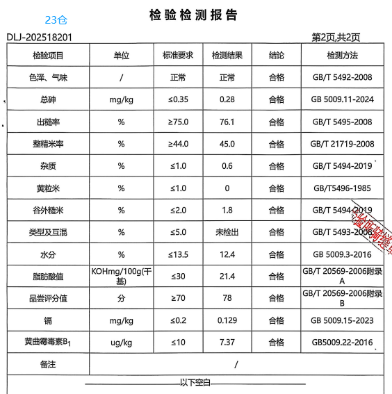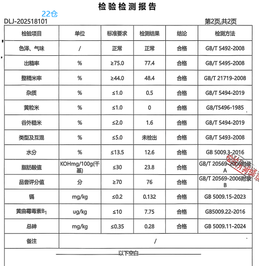 26sx496 | 达州市中贸粮食储备有限责任公司 | 达州市中贸粮食储备有限责任公司 | 22 | 河南 | 2022年 | 籼稻谷 | 二等 | 1000.00 | 77.4 | 48.4 | 0.5 | 12.6 | 正常 | 0 | 23.8 | 180 |
