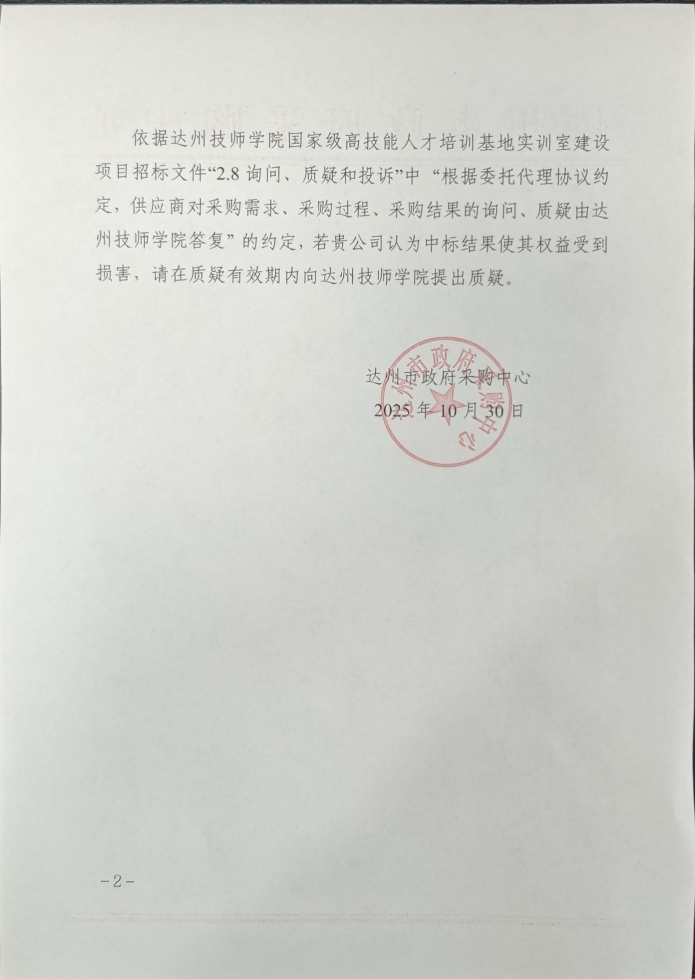 国家级高技能人才培训基地实训室建设项目质疑答复