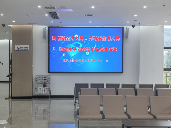 二、强化联动宣传,营造浓厚氛围。充分利用中心LED显示屏、宣传栏等载体,循环播放网络安全宣传标语、公益视频和防护知识。同时,积极拓展线上阵地,通过工作群及时推送网络安全政策法规、典型案例和防范技巧,线上线下同频共振,有效扩大了宣传覆盖面和影响力,使网络安全观念深入人心,营造“网络安全人人有责、人人参与”的浓厚氛围。